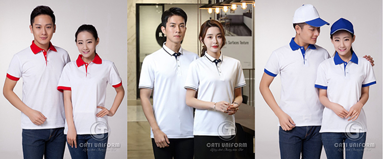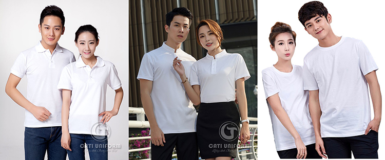 Có nhiều mẫu cổ áo thun trắng mà bạn có thể lựa chọn để may áo đồng phục công sở.