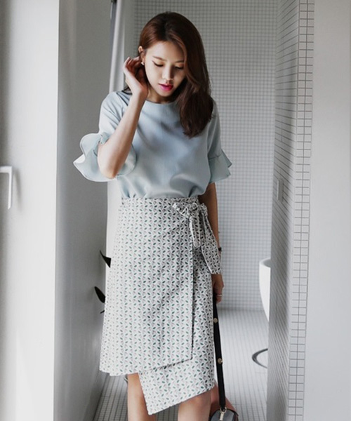 Pha chút cá tính mà vẫn dịu dàng với chân váy quấn Wrap skirt và áo sơ mi tay bèo.