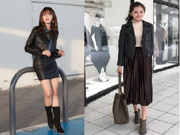 Đều là sự kết hợp giữa áo da và chân váy nhưng lại cho ra những phong cách khác nhau.